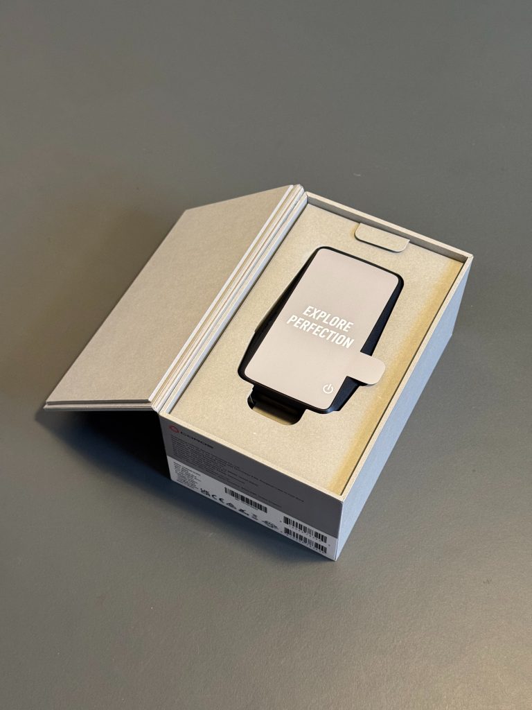 Der Coros Dura kommt ansprechend verpackt in einer eleganten Box daher. Die Verarbeitung wirkt hochwertig: Knopf und Krone haben einen klar definierten Druckpunkt – man spürt deutlich, wenn sie ausgelöst werden. Lediglich der Drehmechanismus der Krone könnte beim Drehen ein spürbares Klicken bieten. Gerade während der Fahrt würde das die Bedienung deutlich erleichtern.
