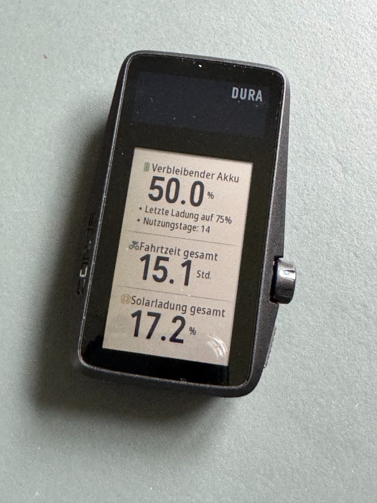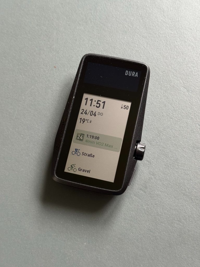Der Dura wird per Knopfdruck aus dem Standby geweckt und ist nahezu sofort einsatzbereit – ein komplettes Ausschalten ist standardmäßig nicht vorgesehen. Der Radcomputer befindet sich dauerhaft im Standby-Modus. Wer möchte, kann das Gerät über ein Untermenü dennoch vollständig ausschalten – nötig ist das im Alltag allerdings selten.