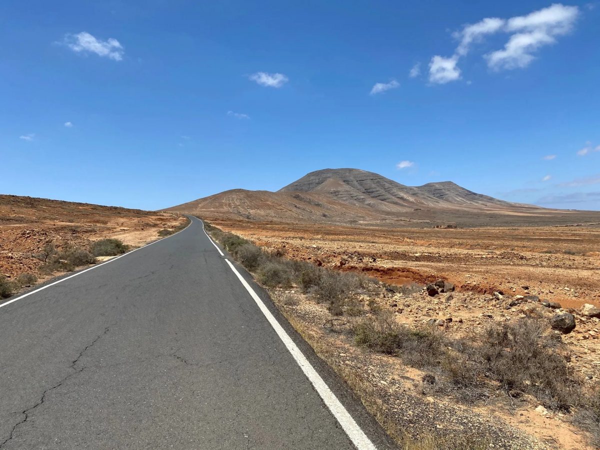 Andi, der 2018 dort war, hatte mich schon auf den Wind vorbereitet. Er war ziemlich weit im Süden und ist gleich nach dem Einrollen vom Rennrad aufs MTB umgestiegen. Ein paar Kilometer hinter Playa Del Matorral gings bei ihm außerdem erstmal über die Autobahn, weil keine andere Straße mit dem Rennrad befahrbar war. Richtig Spaß macht es mit dem Rennrad erst ab der Mitte dieser Insel. Zumindest zu dieser Jahreszeit war der Wind morgens noch einigermaßen gutmütig. Die Touren sollten gut geplant sein, denn es ist hier keinen Seltenheit, dass auch bergab in die Pedale getreten werden muss.