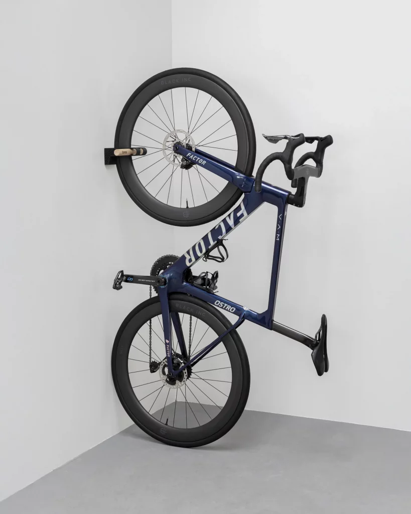 Spannend wird es, wenn das Rennrad noch Teil des Raumkonzepts wird. Ein knalliges Aero Rennrad wirkt fast wie ein Kunstwerk. Der Yamazaki-Ständer hält sich dabei bewusst zurück und überlässt dem Bike die Bühne.