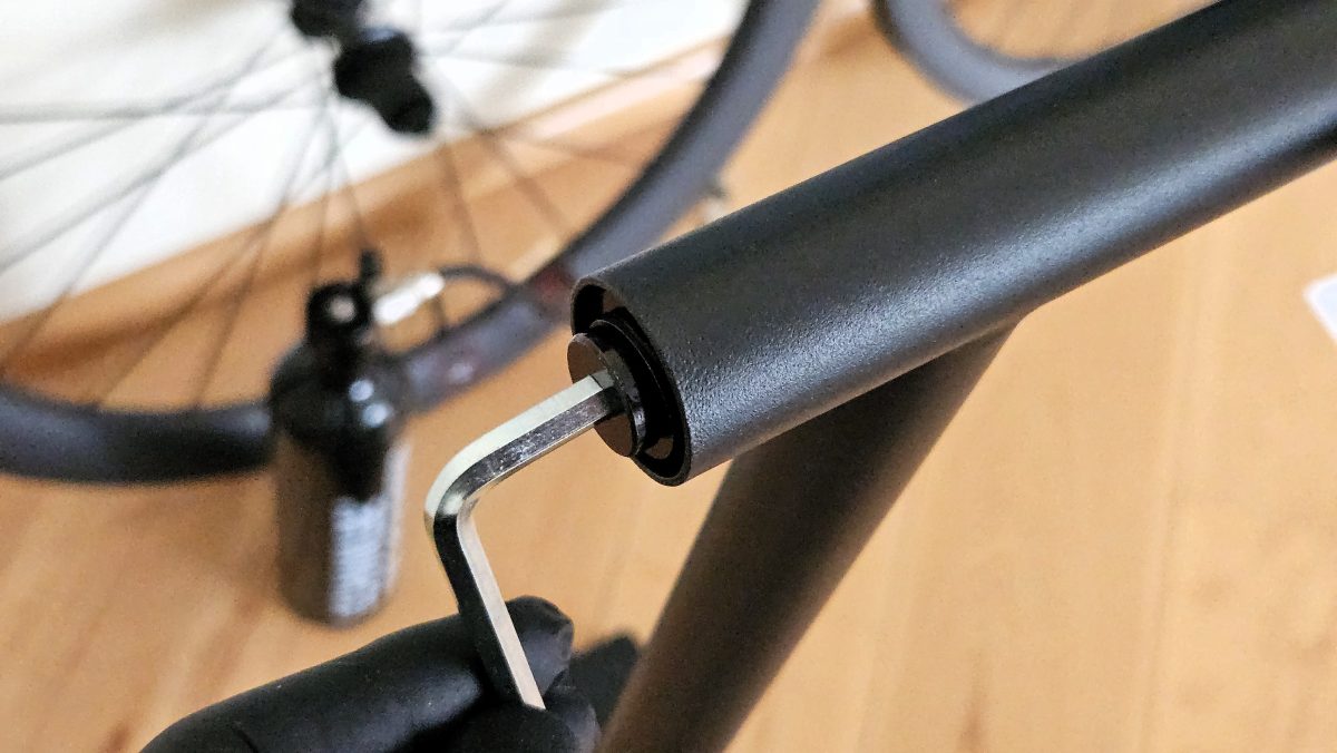 Yamazaki gibt an, dass Räder bis 12 Kilogramm eingehängt werden können. Das passt für meine Räder, weil ich ohne Motor fahre. Beim Gravel dreht sich die Halterung leider etwas, wenn ich das Rad eher vorne aufhänge. Noch fester anziehen ließ sich die Schraube allerdings nicht. Leider ist der stilische Ständer nur für Räder mit einem Standover von bis zu 80 cm geeignet.