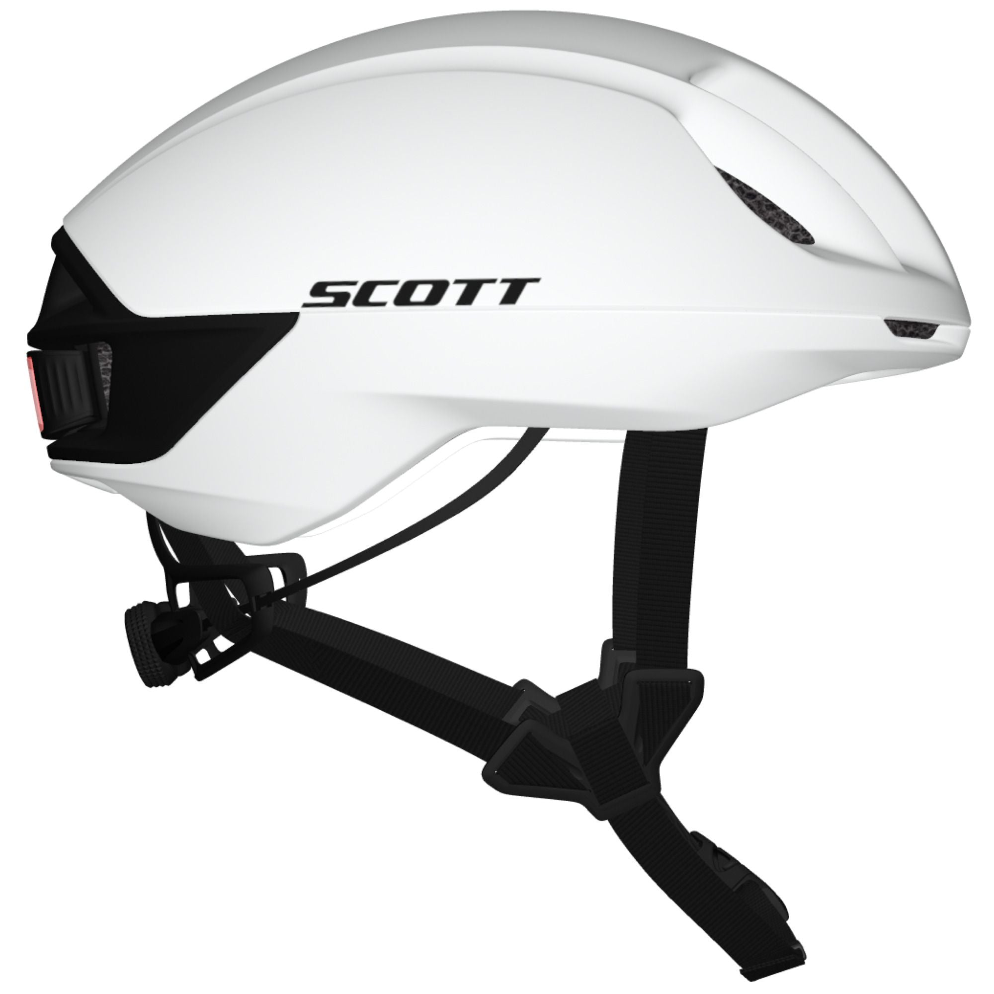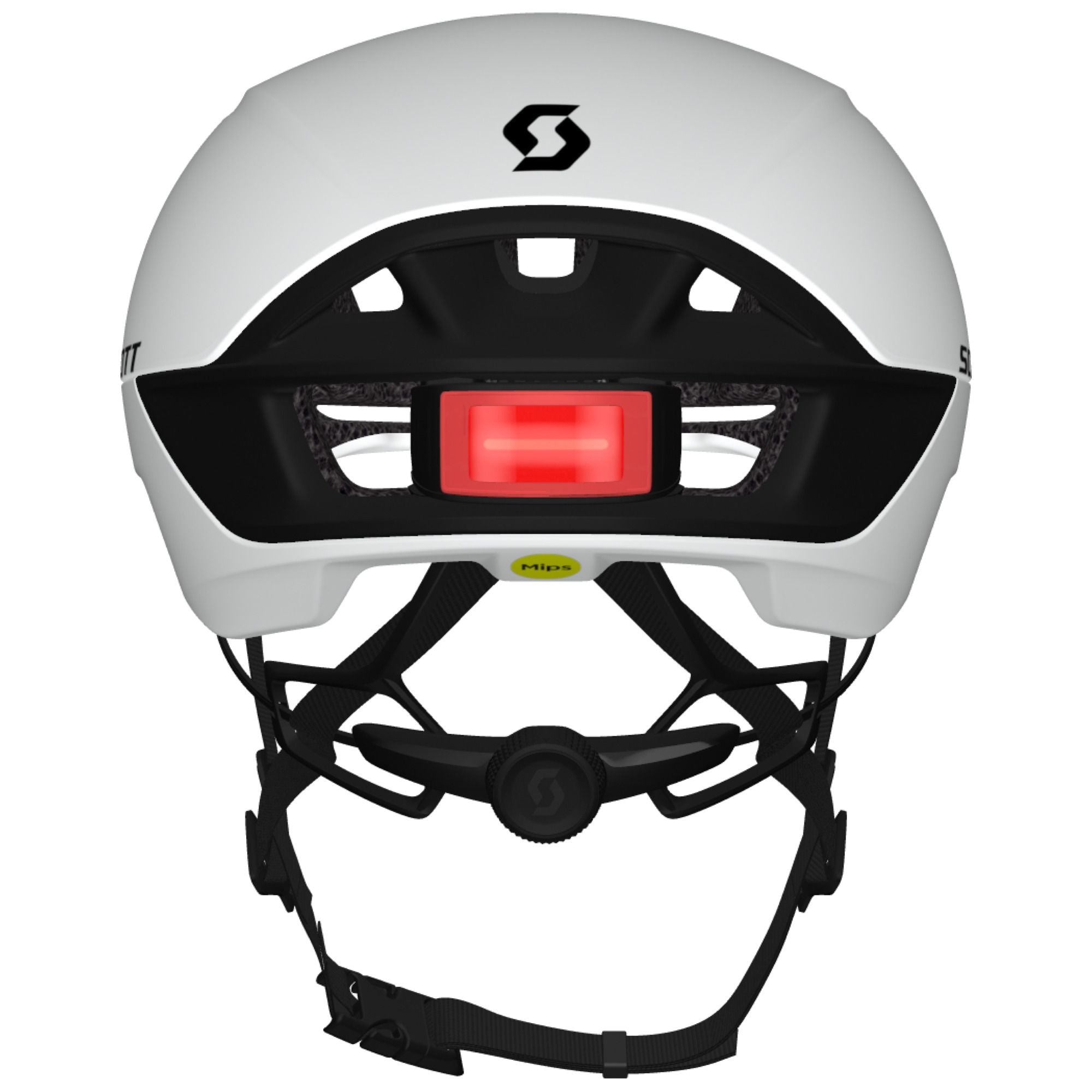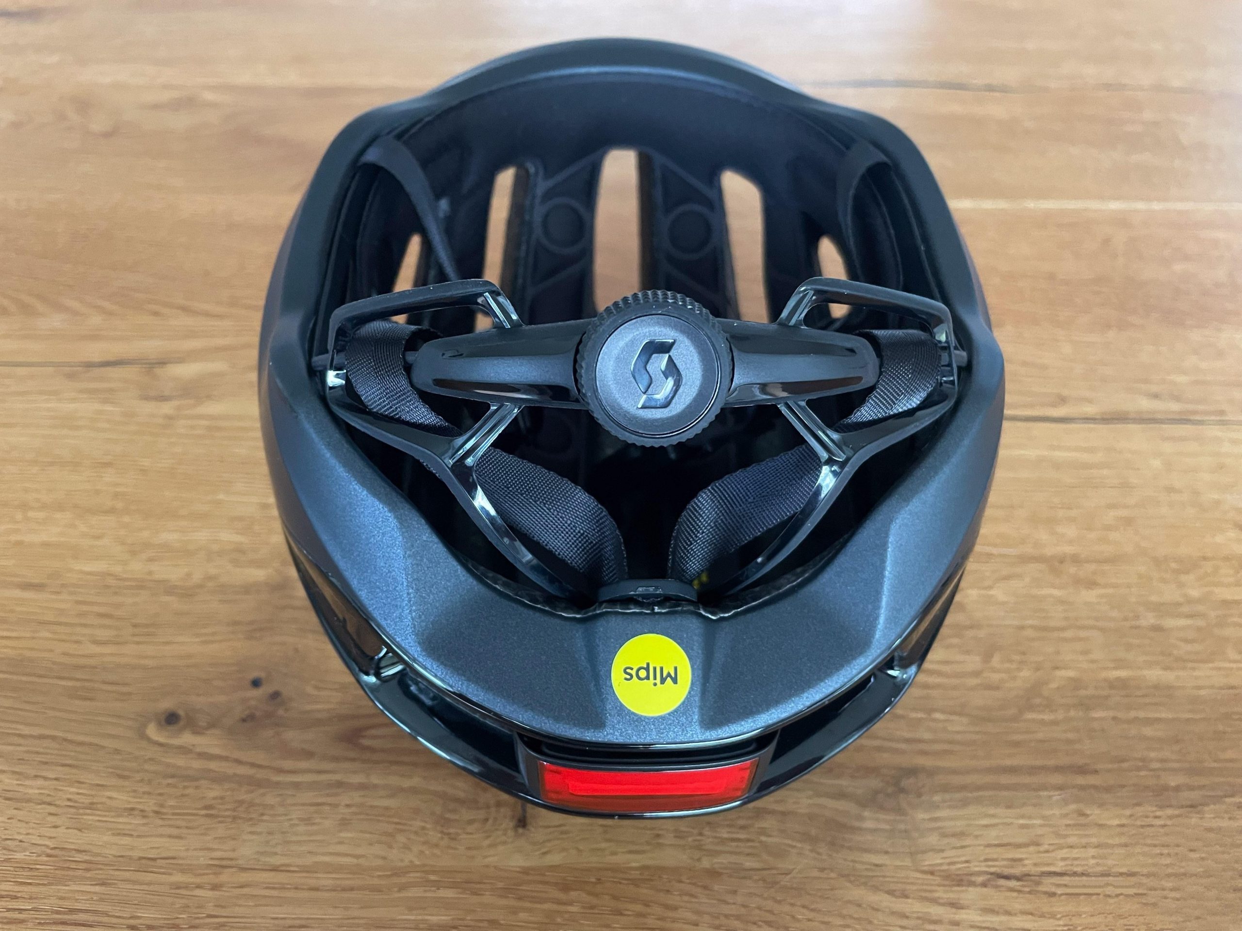 Wem es was sagt: Die Außenschale ist aus Polycarbonat und im Inmold-Verfahren mit dem Innenteil verbunden. Um den aktuell besten Schutz vor Rotationsverletzungen bei einem Aufprall zu gewährleisten, setzt Scott auf MIPS Air Node. Dazu, und damit bringt Scott ein Stückchen mehr Sicherheit für den Radsportler, ist das einsteckbare Rücklicht dabei.