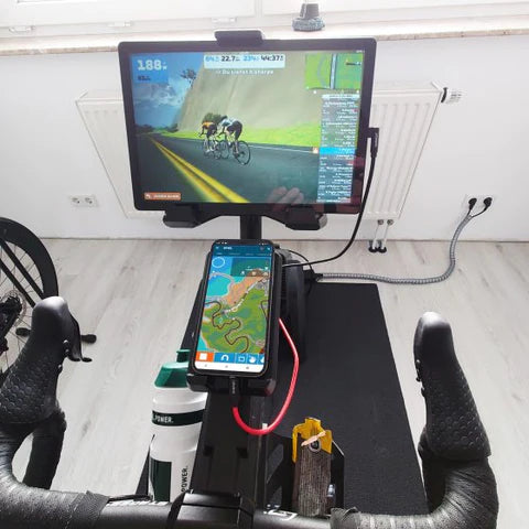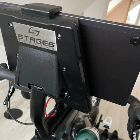 Stages SB20 Wiegetritt Radladen Stages SB20 Wiegetritt Radladen Stages SB20 Wiegetritt Radladen Stages SB20 Aufbauen Das Zusammenbauen ist ein Kinderspiel. Die Teile sind, nennen wir es, pragmatisch gehalten. Mein persönlicher Favorit ist der mitgelieferte Tablethalter. Darunter ein Platz fürs Handy. Stages hat hier mitgedacht und zwei USB Stecker in den Vorbau eingebaut. Mir fallen sofort die Fans von Trainer Road ein. Die App bringt keine Umgebung mit und so kann am TV Tour de France laufen, während am Tablet die Leistungswerte und Interwalle zu sehen sind. Wer kein Tablet will, kann es auch weglassen. Ein Cover zum Abdecken des offenen Vorbaus liegt bei.