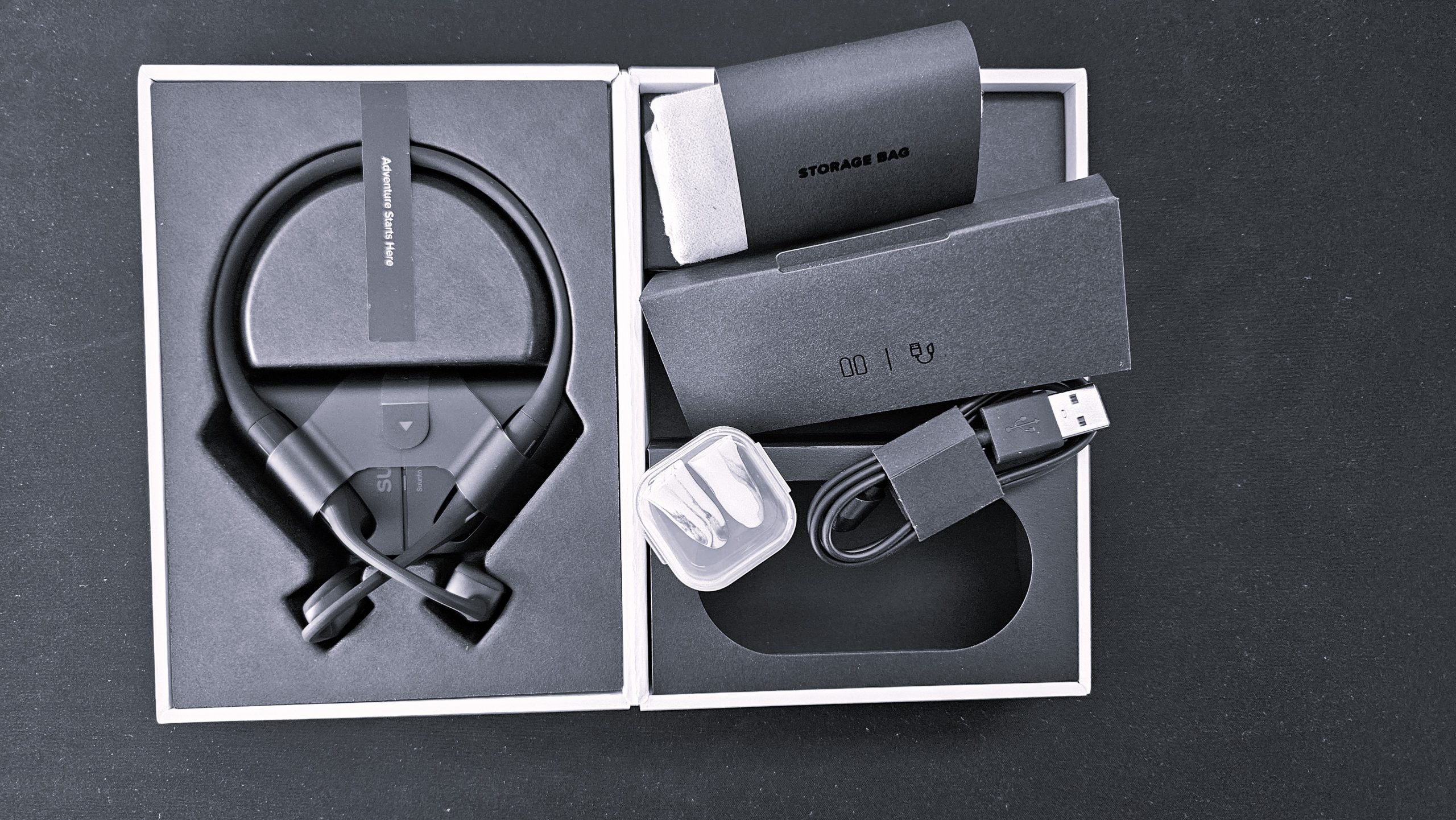 Im Karton ist der Kopfhörer, ein Ladekabel, die Powerbank, ein Beutel und Ohrenstöpsel. Dazu die obligatorische Anleitung etc.