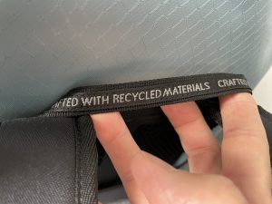 Beim Unboxing der Vaude Aqua Tansformer aus der dünnen Plastikverpackung fällt mir als erstes ins Auge, dass an einigen Stellen das Wort Recycled zu lesen ist. Recycling und Re-use ist heute ein Trend, daher ist das für mich positiv konnotiert. Auch ist der Anhänger mit einem Packpapierband befestigt, was den Nachhaltigkeits-Style verstärkt. Bei Vaude ist das keineswegs nur Green Nudging, die Firma aus Tettnang ist bekannt für ökologisch und sozial nachhaltige Produktion.