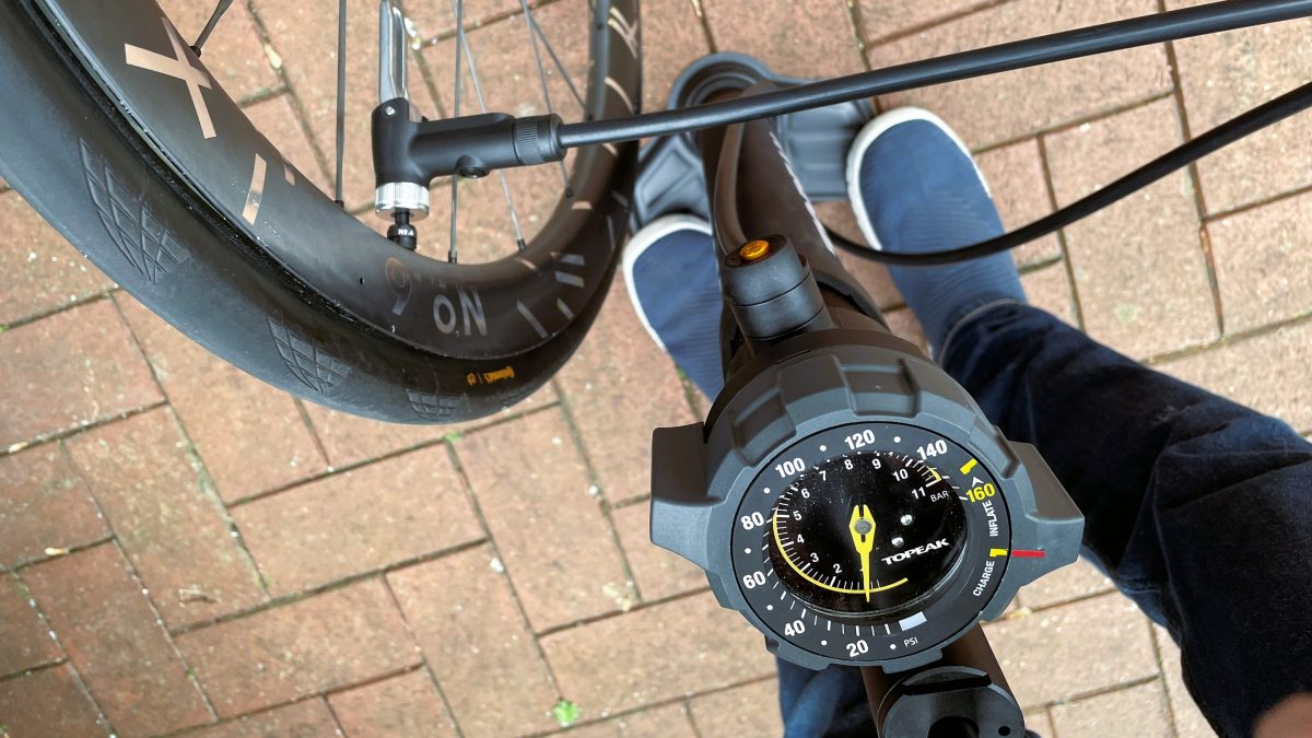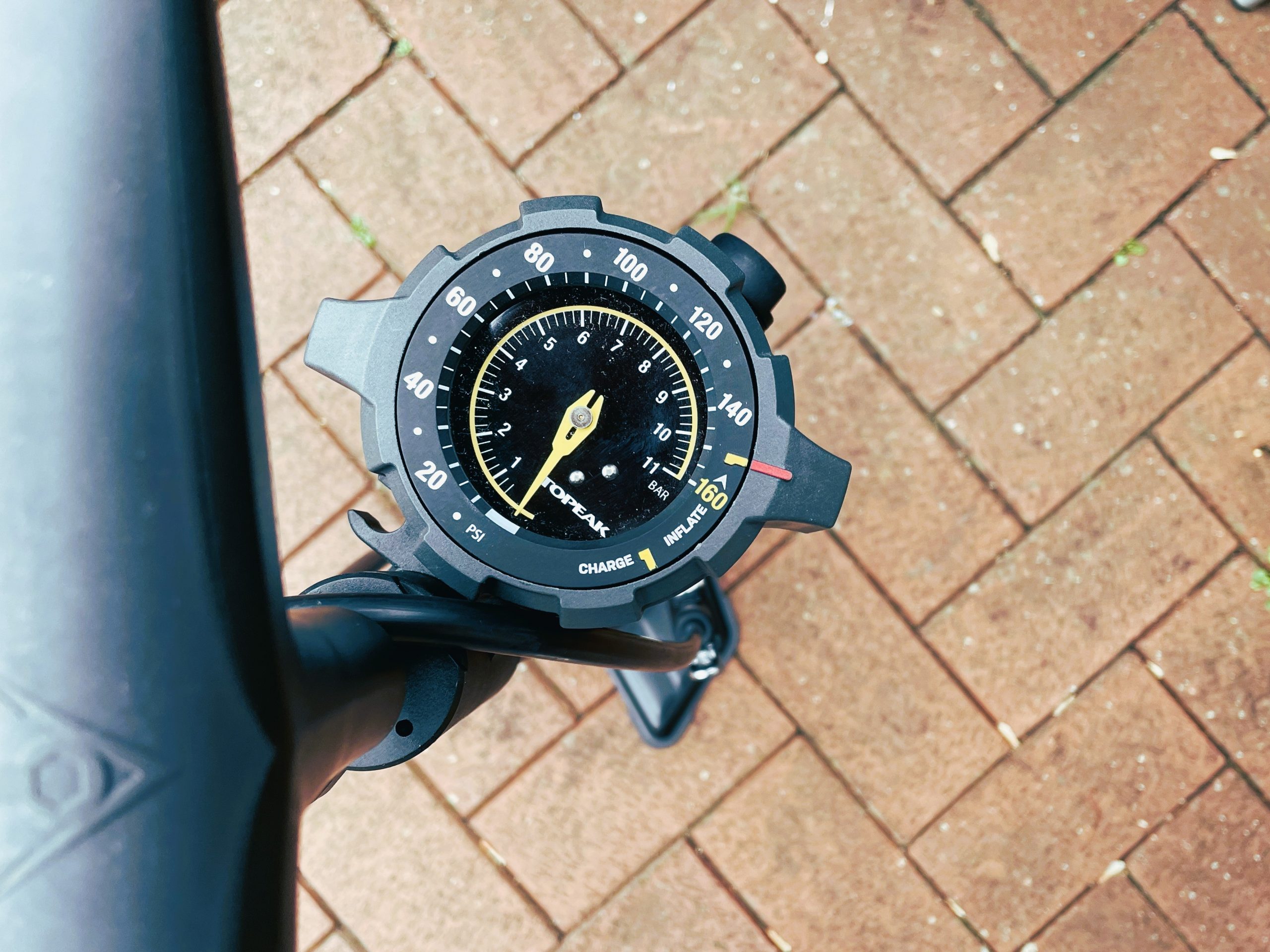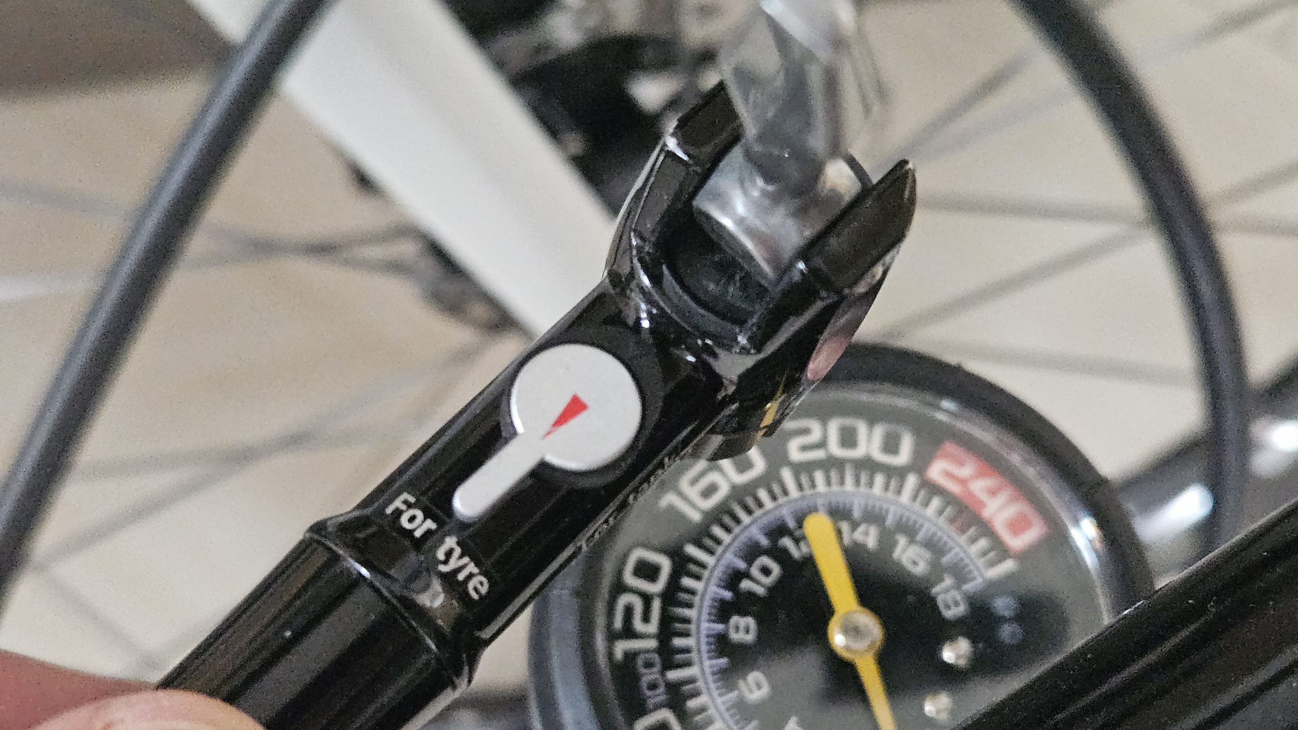 Nach dem Setzen des Reifens kann der Druck präzise nachgeregelt werden. Die beiden Luftablassknöpfe bei der Topeak ermöglichen ein feines Abstimmen des Reifendrucks, ohne dass der Pumpenkopf abgenommen werden muss. Das ist besonders praktisch, wenn es um die letzten Zehntel Bar geht, etwa bei der Abstimmung des Setups für verschiedene Untergründe oder Fahrstile. Bei Pumpen mit einem separatem Tank muss umgesteckt werden.