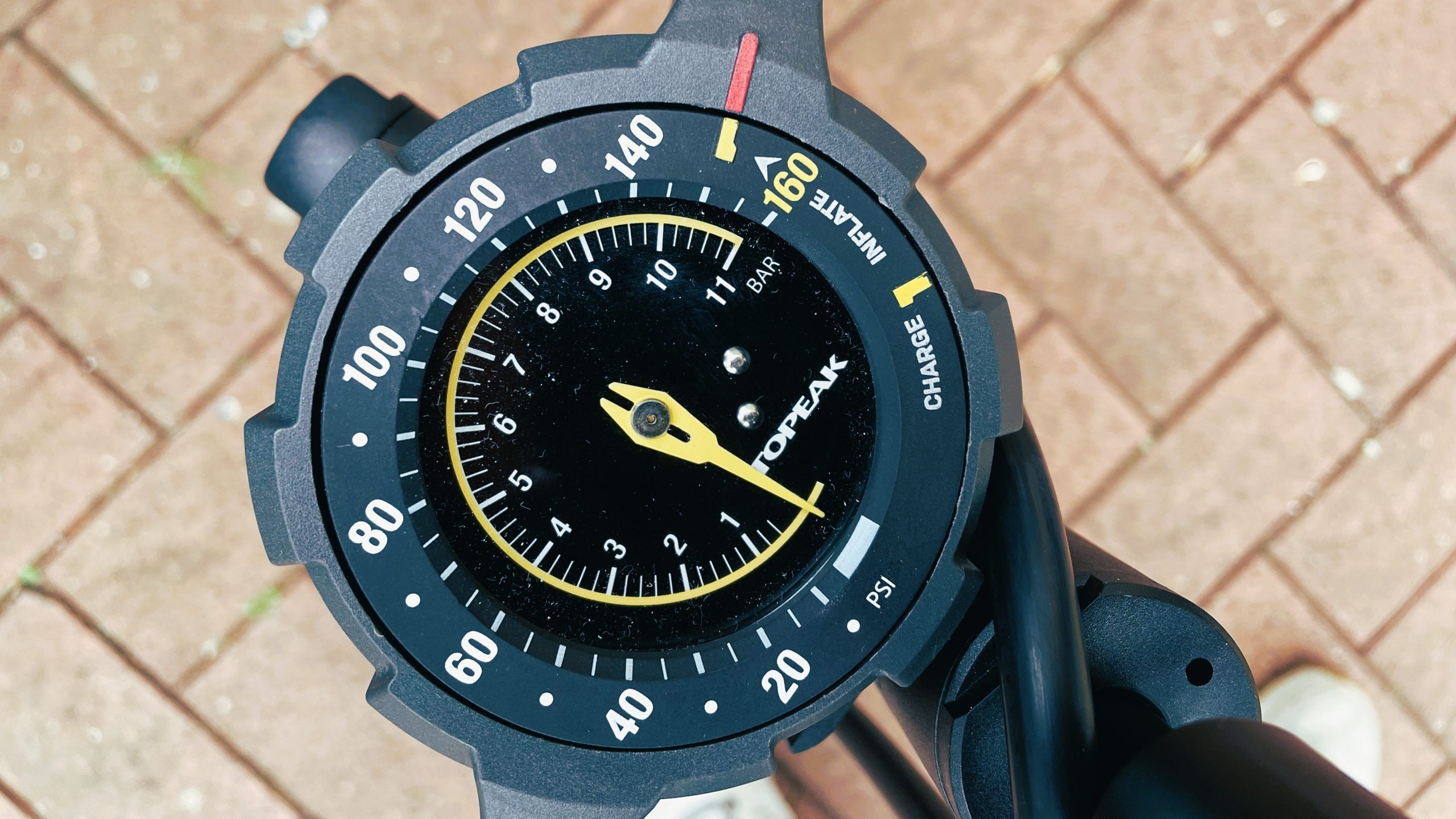 Ein zentrales Feature der Fahrradpumpen mit Tank ist der einfache Wechsel zwischen Charge und Inflate. Im Charge-Modus wird der Tank mit Luft befüllt, die dann auf Knopfdruck schlagartig in den Reifen ageht. Sobald der Reifen sitzt, kann per Drehschalter auf den Inflate-Modus umgestellt werden. Das ist bei der Topeak ein großer Ring am Manometer, bei den anderen ein kleiner Hebel am Ventil. Die Pumpe arbeitet dann wie eine klassische Standpumpe und ermöglicht das präzise Nachpumpen auf den gewünschten Druck.