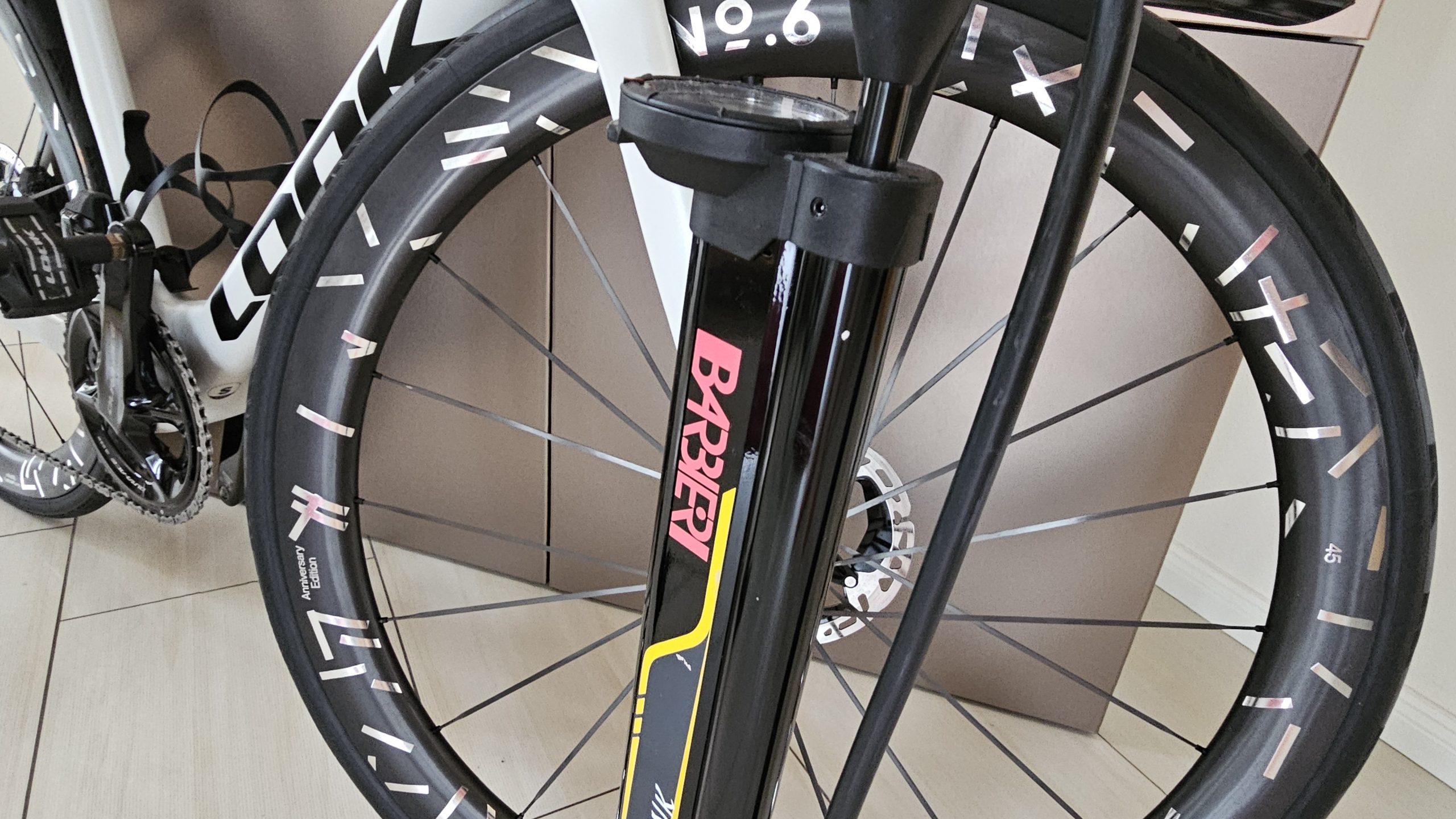 Die Pumpe ist kein Leichtgewicht. Doch genau das sorgt für einen sicheren Stand, auch wenn beim Aufpumpen kräftig gearbeitet werden muss. Die massive Bauweise zahlt sich also im Alltag aus, vor allem bei der Montage von Tubeless-Reifen, bei der Stabilität gefragt ist.