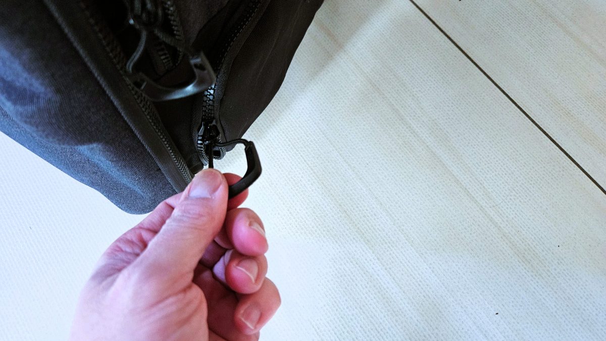 In dem Pakgo Rucksack sind sehr viele Fächer. Jeder äußere Reisverschluss ist mit einer großen Schlaufe, die so sogar mit Handschuhen leicht zu öffnen ist. Das Race Rain Bag von Castelli hat zwar auch große Zip-Griffe, aber die sind aus Metall und glatt.