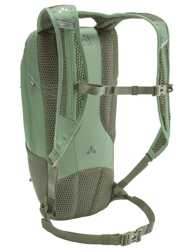 Das erste, was beim Vaude Uphill 8 auffällt, ist sein geringes Gewicht. Mit nur 340 Gramm ist er ein echtes Leichtgewicht und fühlt sich auf dem Rücken auch so an. Diese Reduktion auf das Notwendigste ist es, was den Rucksack so angenehm macht. Das Design, wenn man hier von Design sprechen kann, ist schlicht und ohne unnötige Schnörkel. Der Rückenbereich ist minimalistisch und gut belüftet. Den Rucksack gibt es in vier Farben.