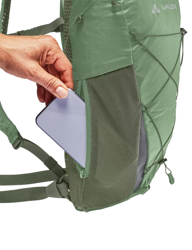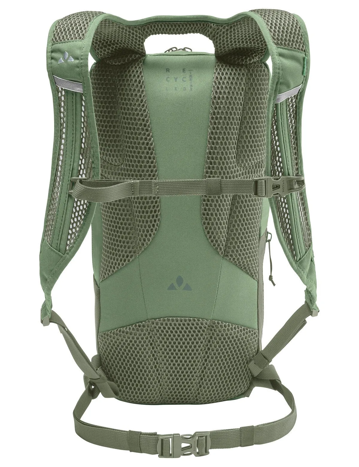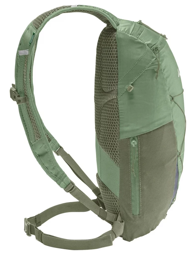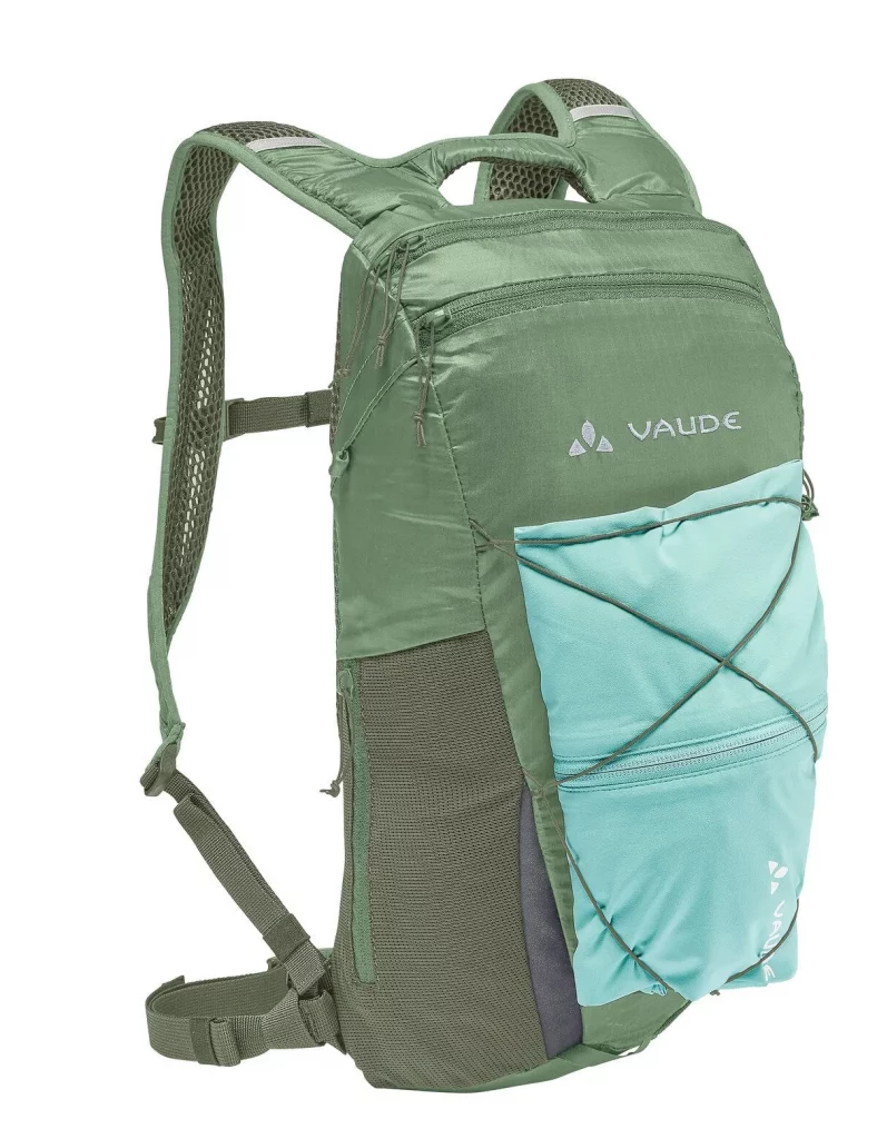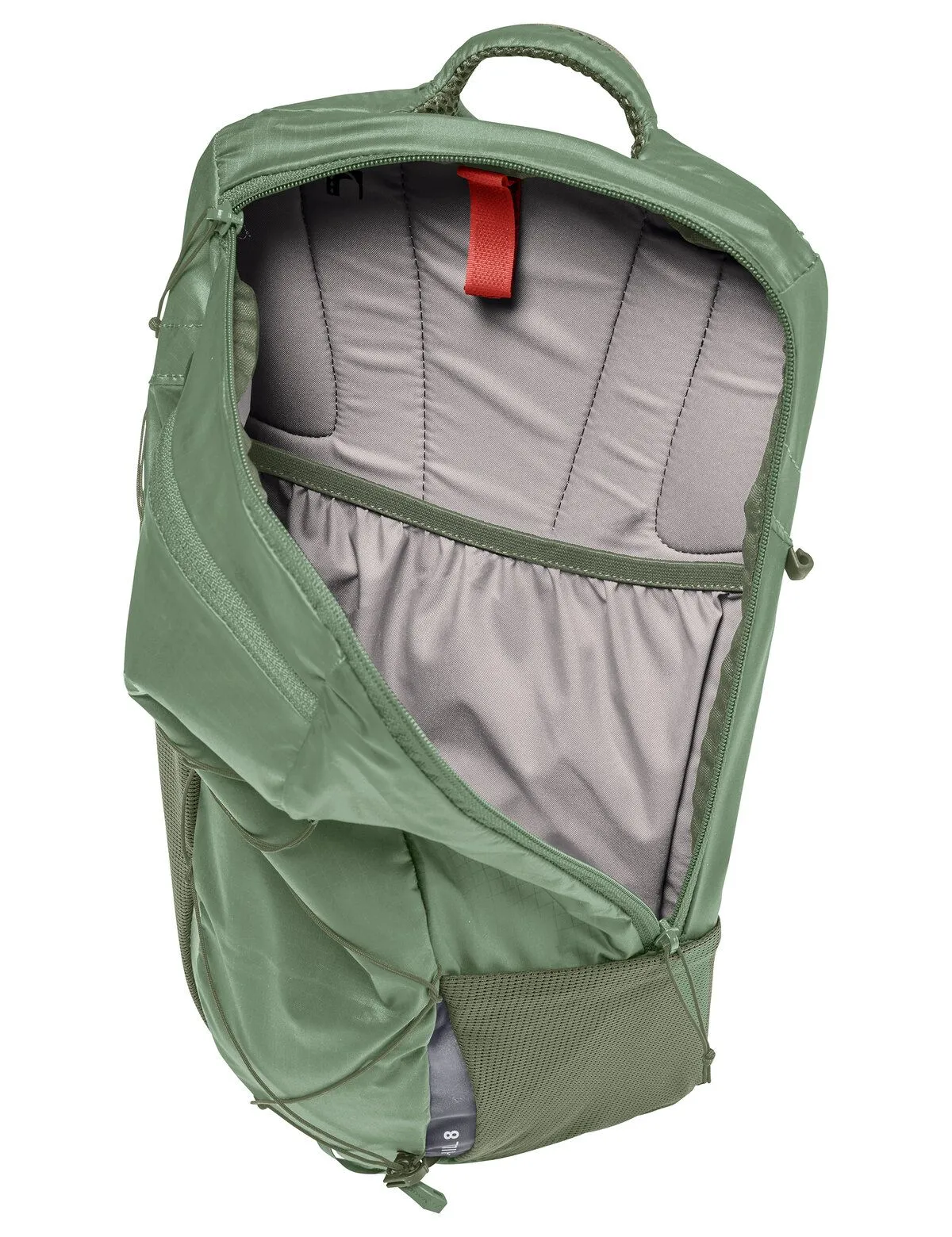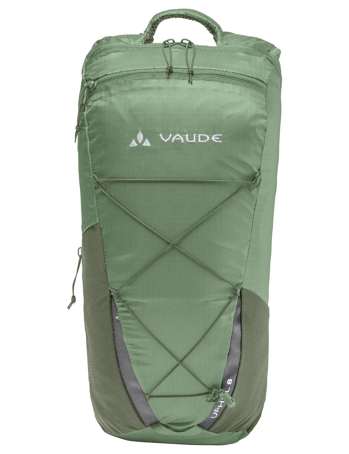 Der Vaude Uphill 8 ist aus einem robusten, aber leichten Polyamid-Material gefertigt und mit einer PFC-freien, wasserabweisenden Beschichtung versehen. Er ist zudem Trinksystem-kompatibel.