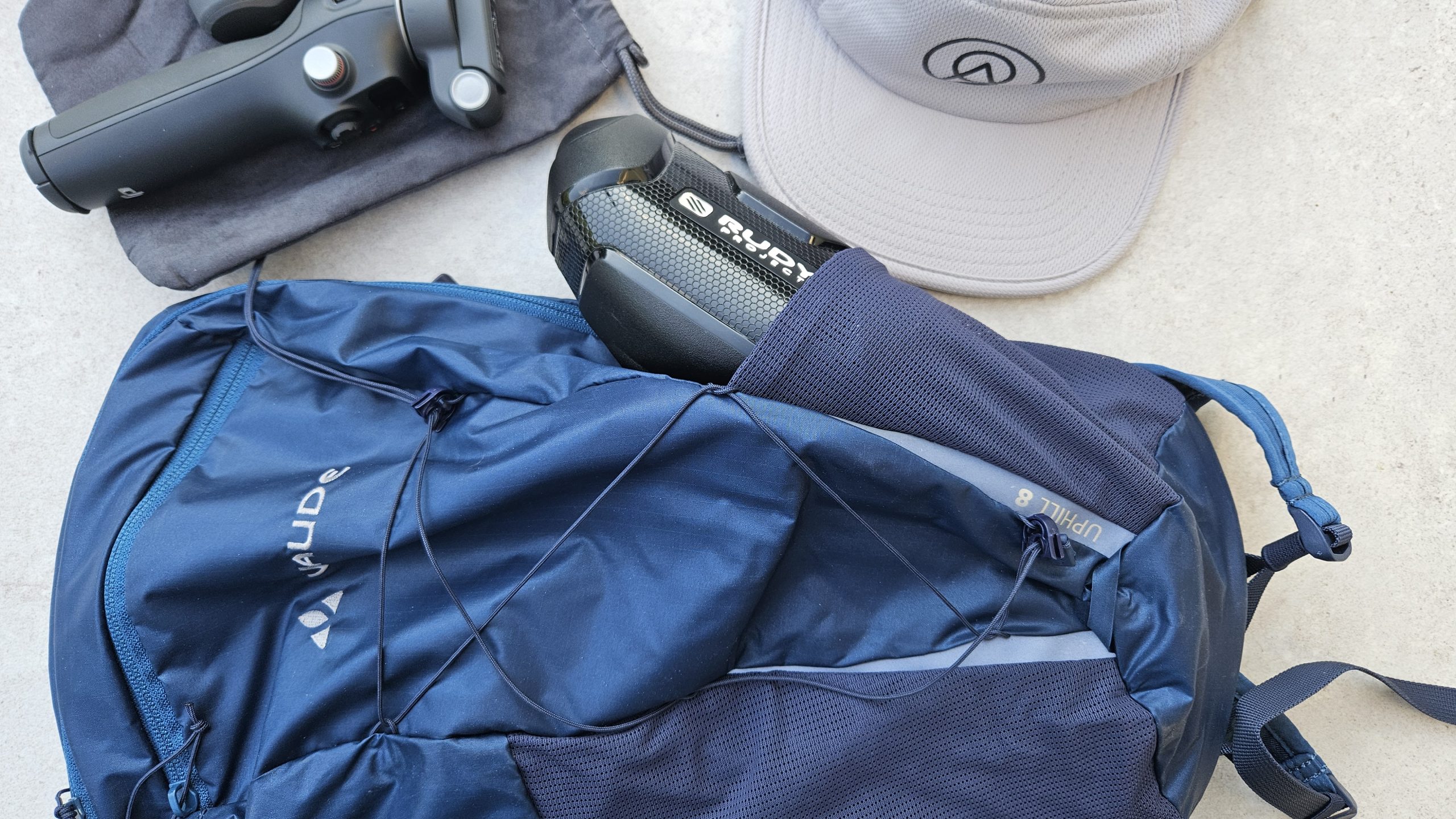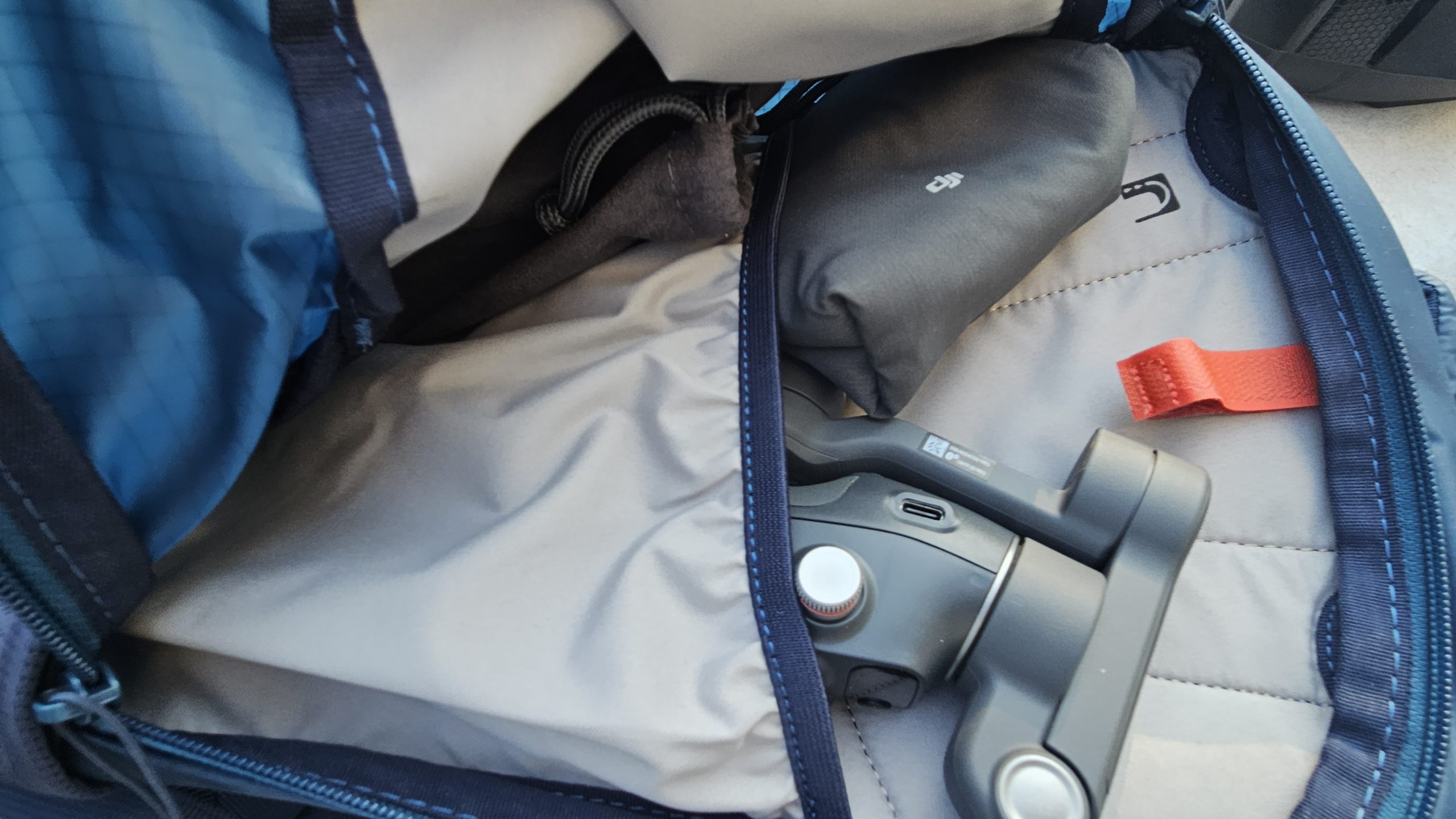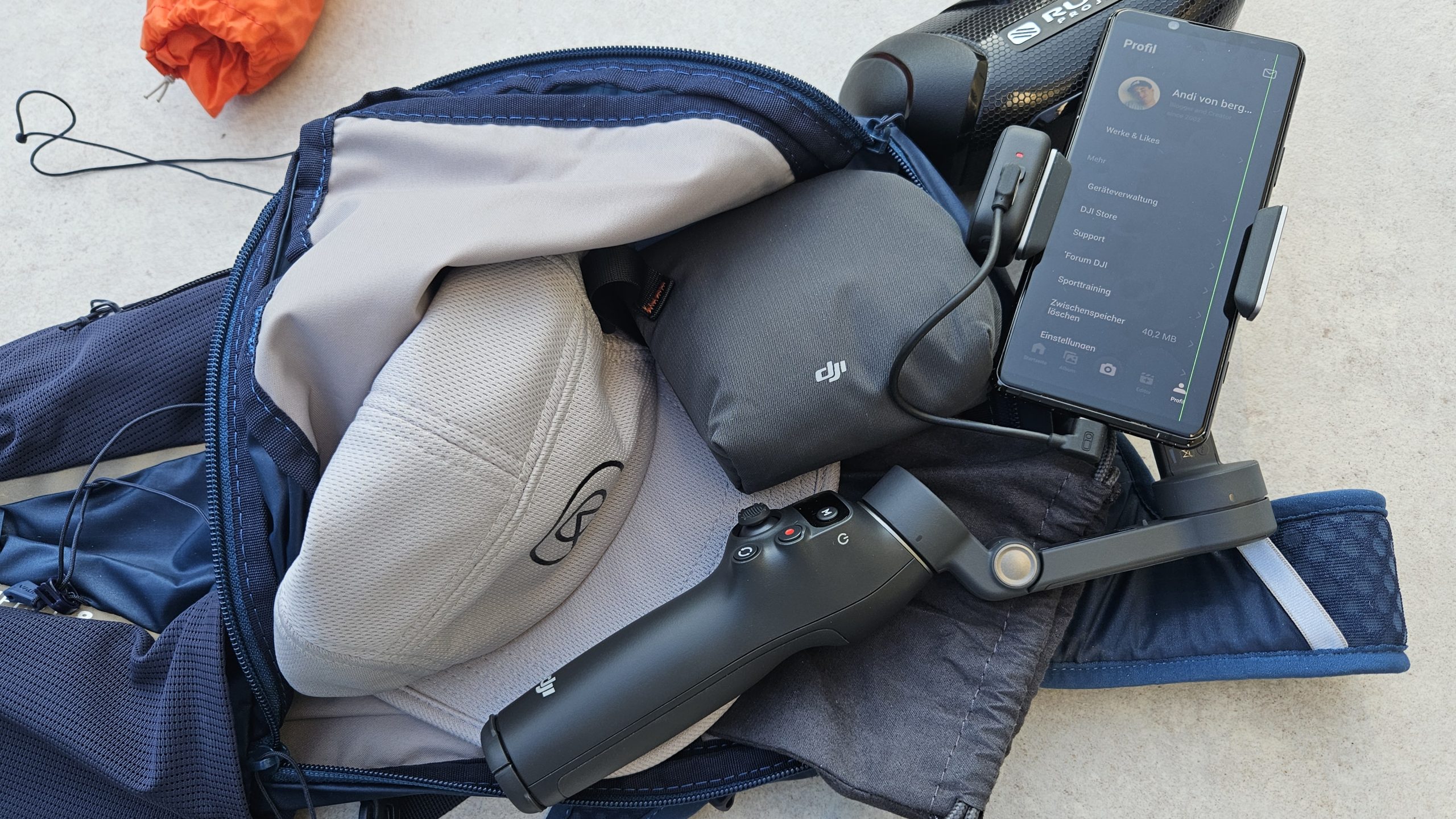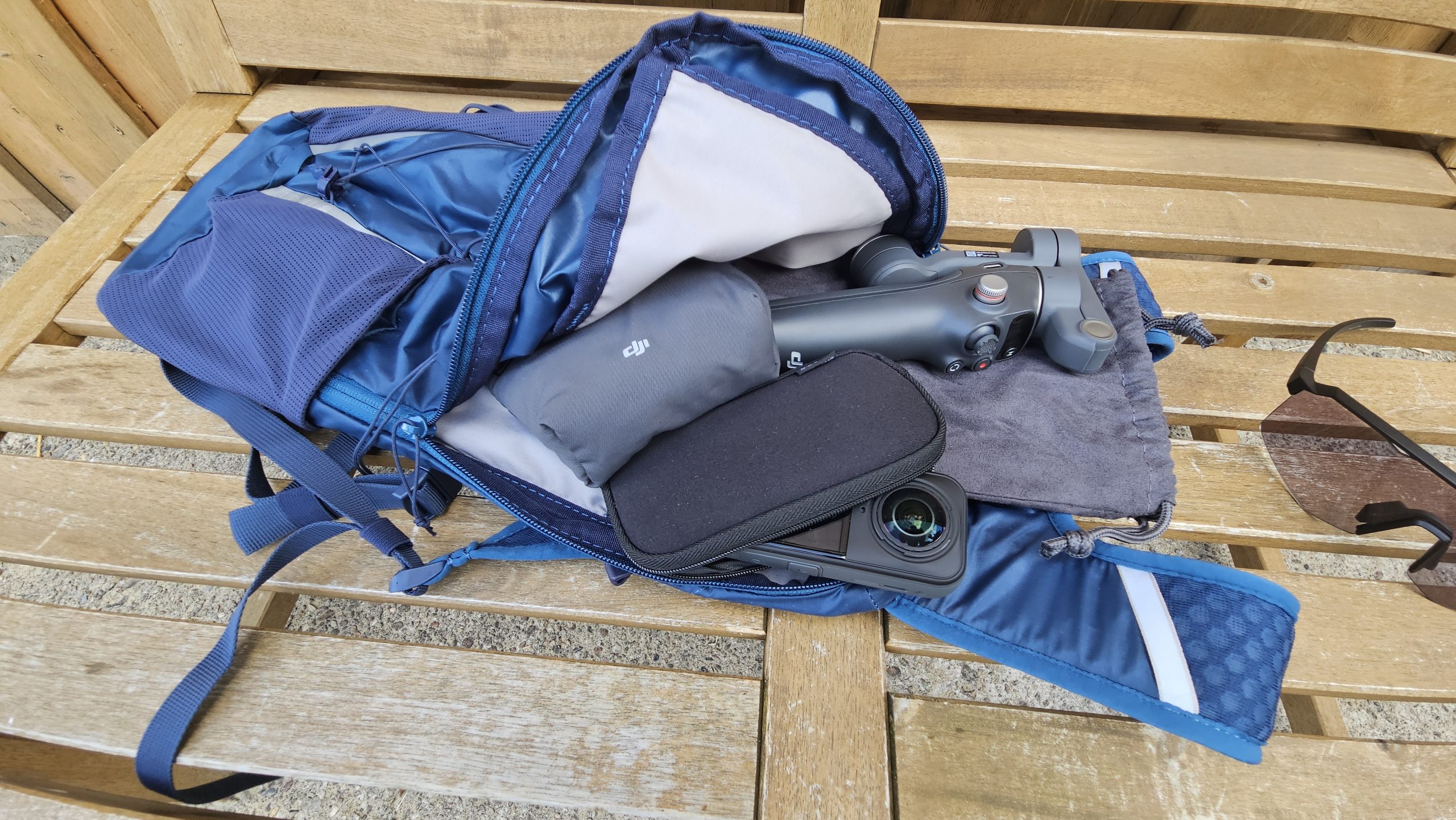 Bei meinen eigenen Touren dient der Rucksack einem ganz speziellen Zweck: Er sollte das DJI Equipment und die Insta360 X5 samt Zubehör sicher transportieren. Das verstauen war kein Problem und ein kleines Fach war noch praktisch für Handy und Papiere. Das ist aber noch keine Besonderheit. Gut gefallen hat mir die eingesetzte Rückenplatte, weil dadurch nach vielen Kilometern nichts auf meinen Rücken drückte.