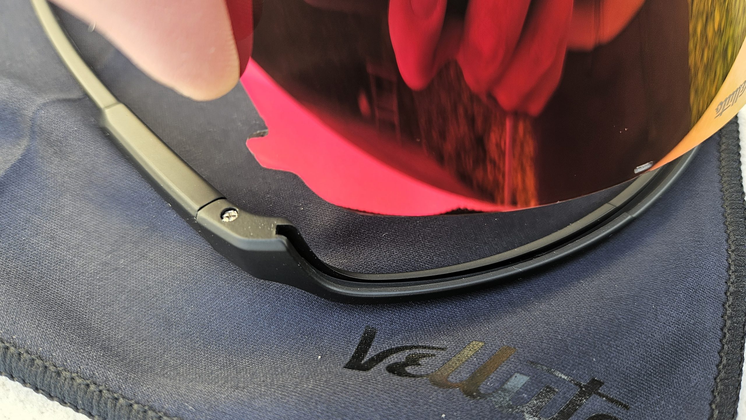 Ein echtes Pro der Velluto Rennradbrille ist der individuell anpassbare Nasenclip. Damit werden nicht nur Druckstellen vermieden, sondern die Brille sitzt „extragut“. Im Gegensatz zu anderen, die mit mehreren Nasenpads hantieren, setzt Velluto auf einen verstellbaren Clip. Das reduziert den Bedarf an Wechselteilen.
