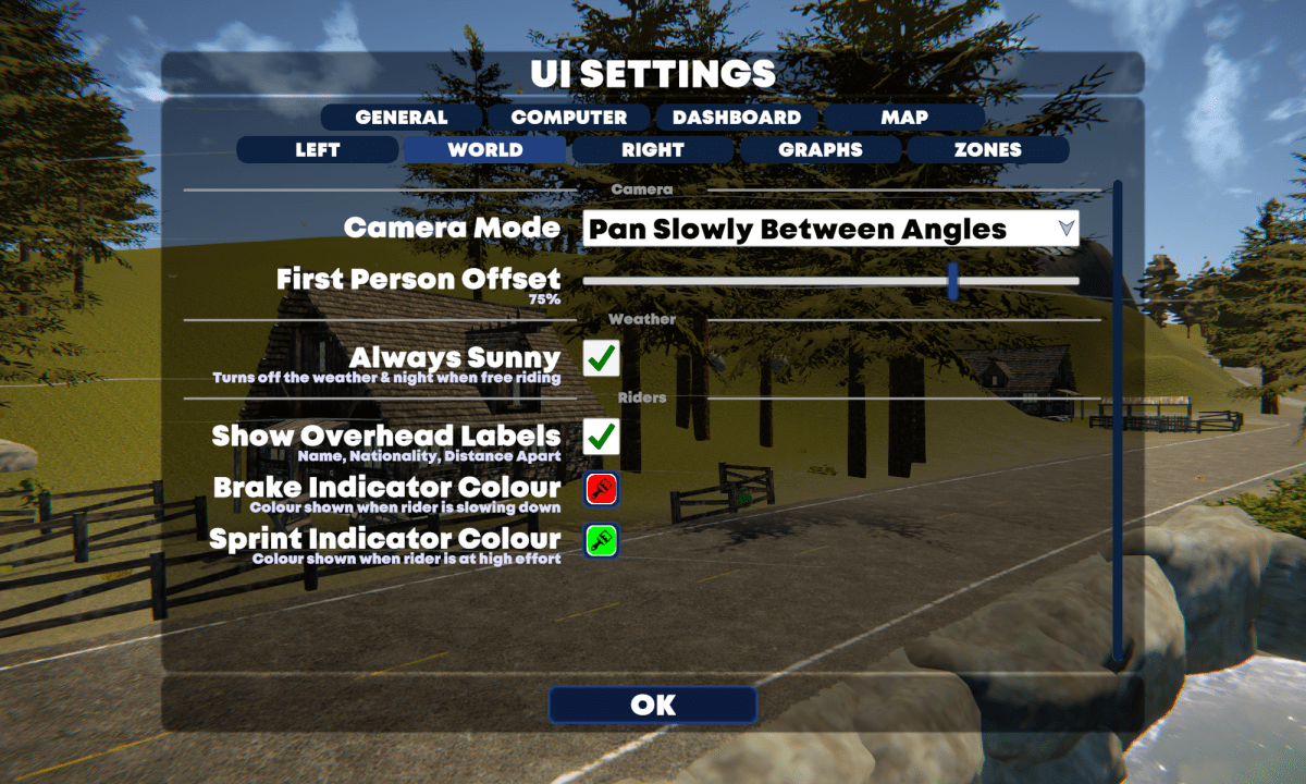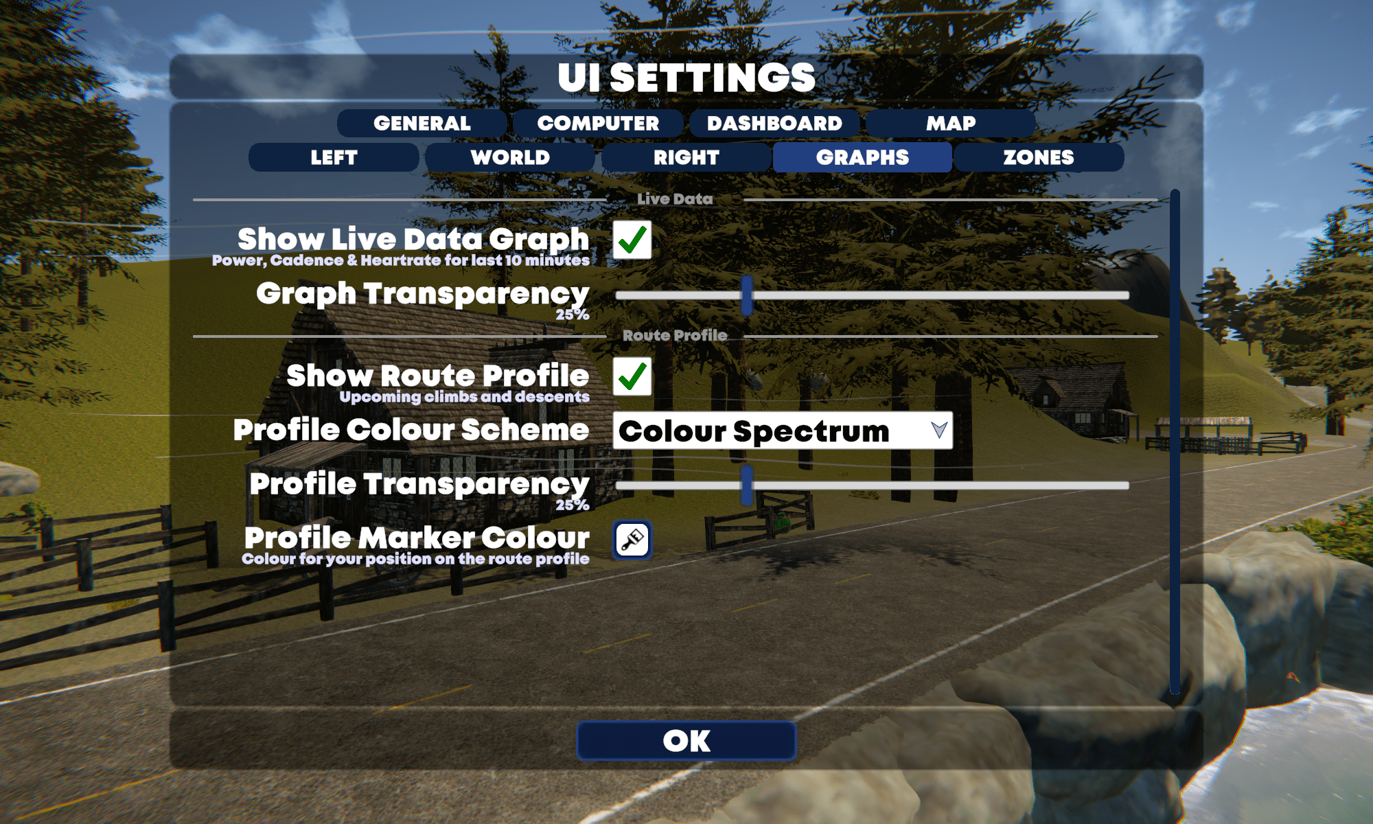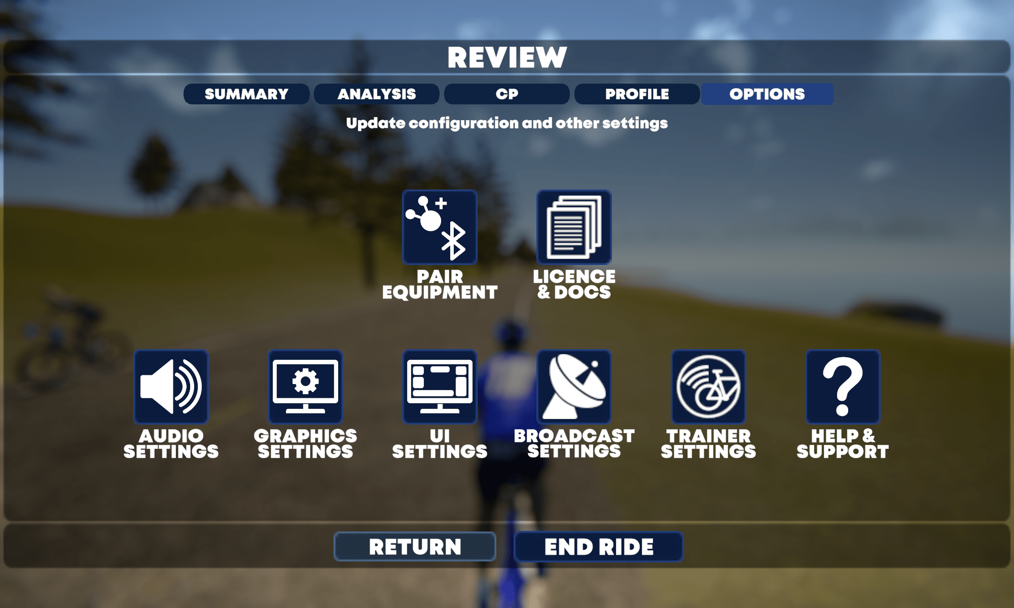Optionen während der Fahrt in TrainingPeaks Virtual ändern