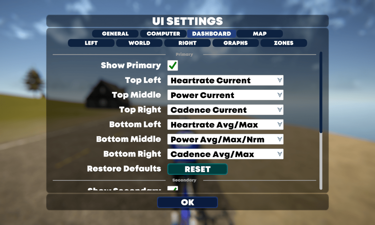 Besonders am Anfang sind die vielen Funktionen erstmal unüberschaubar. Genau wie beim neuen Garmin Radcomputer will der Indoor-Cyclist vieles ausprobieren ohne dabei den Workout zu pausieren. In Zwift muss der Radfahrer dazu zuerst zum Stillstand kommen. Eine weiteres Features ist die individuelle Platzierung der einigen Werten auf dem Bildschirm.