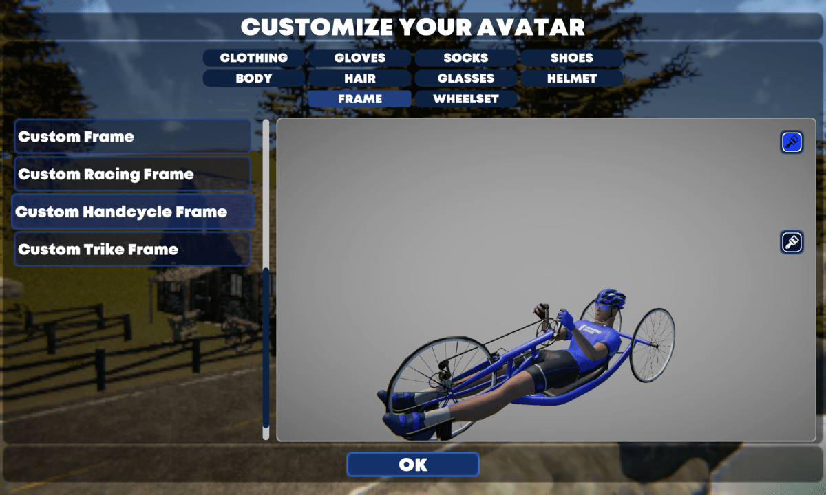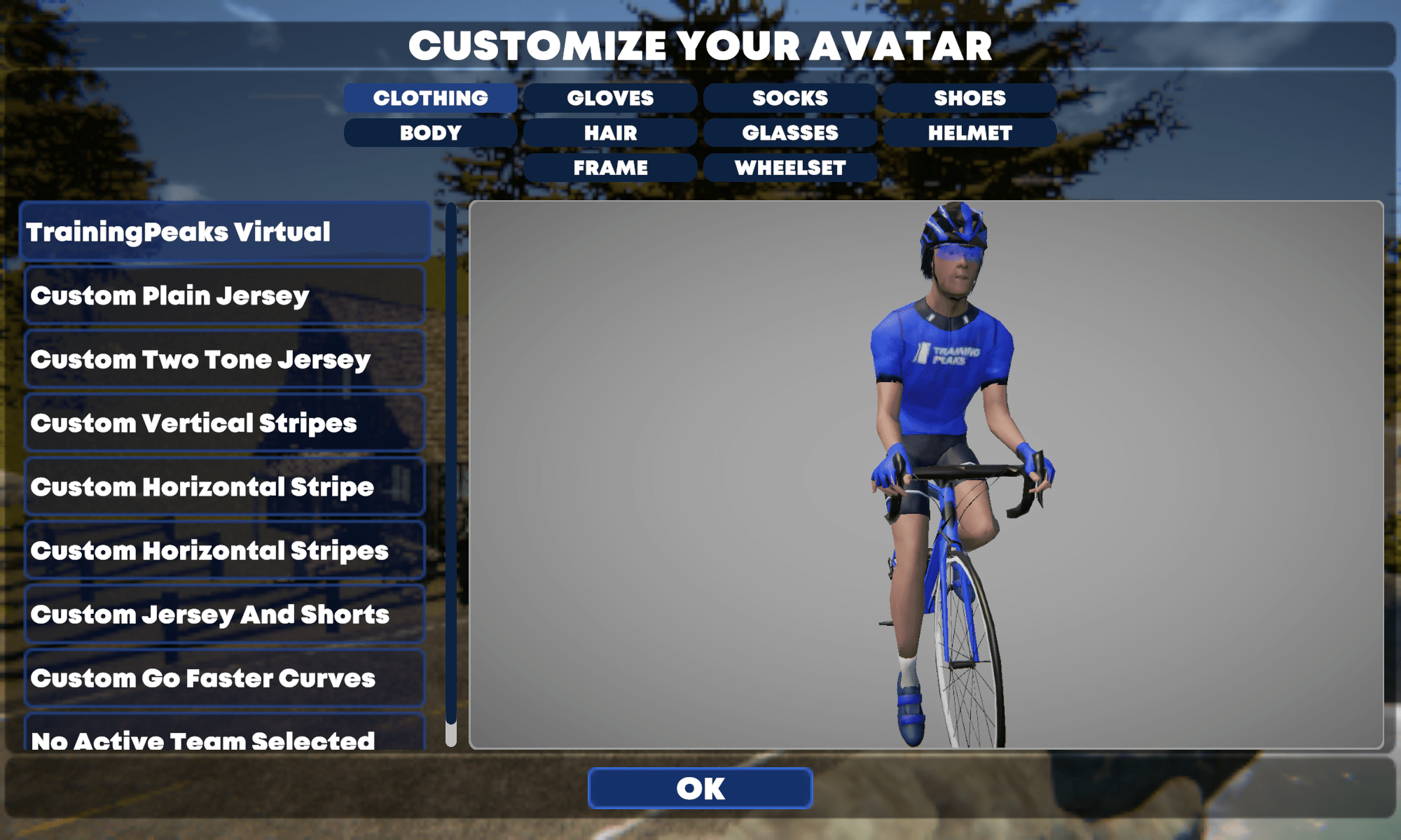 Am Anfang der Karriere steht da ein Rennrad mit Felgenbremsen oder zwei Liegefahrräder und dazu zwei Sätze Laufräder. Für den Sportler hängen verschiedene Trikots, Brillen, Handschuhe, Socken und Helme im virtuellen Kleiderschrank. Fahrrad und Radfahrer lassen sich dann wie bei anderen Apps drehen. Die Haltung des Avatars sieht aus, als hätte er sich die komplette Brustwirbelsäule gebrochen. Um nicht immer Zwift als Vergleich herzunehmen: TrainingPeaks Virtual ist ganze Lichtjahre von Rouvy, BKool und dem von Wahoo beerdigtem RGT entfernt.
