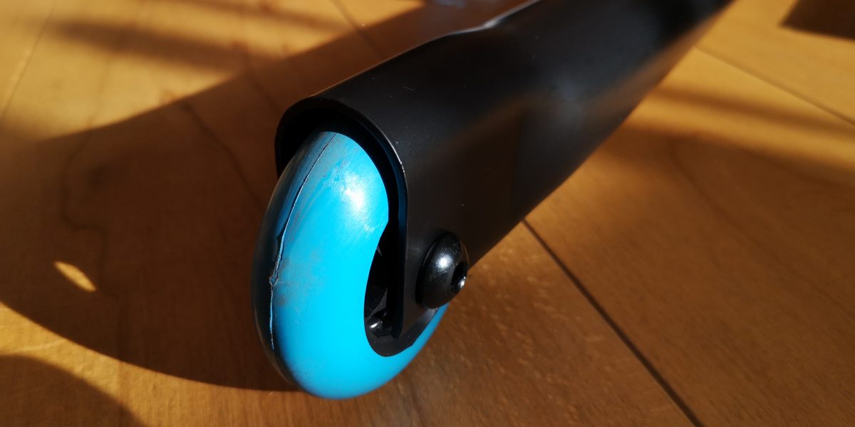 Der Wahoo Desk lässt sich problemlos näher heranrollen oder weiter wegschieben. Die großen Rollen laufen sauber, nichts hakt. Beim Billigmodell waren winzige Rollen mit Bremsen verbaut, die zwar das Wackeln reduzieren sollten, aber das Verschieben während des Tretens unmöglich machten. Da musste ich jedes Mal das Pedalieren unterbrechen.