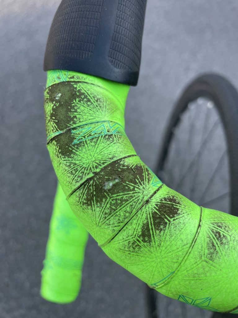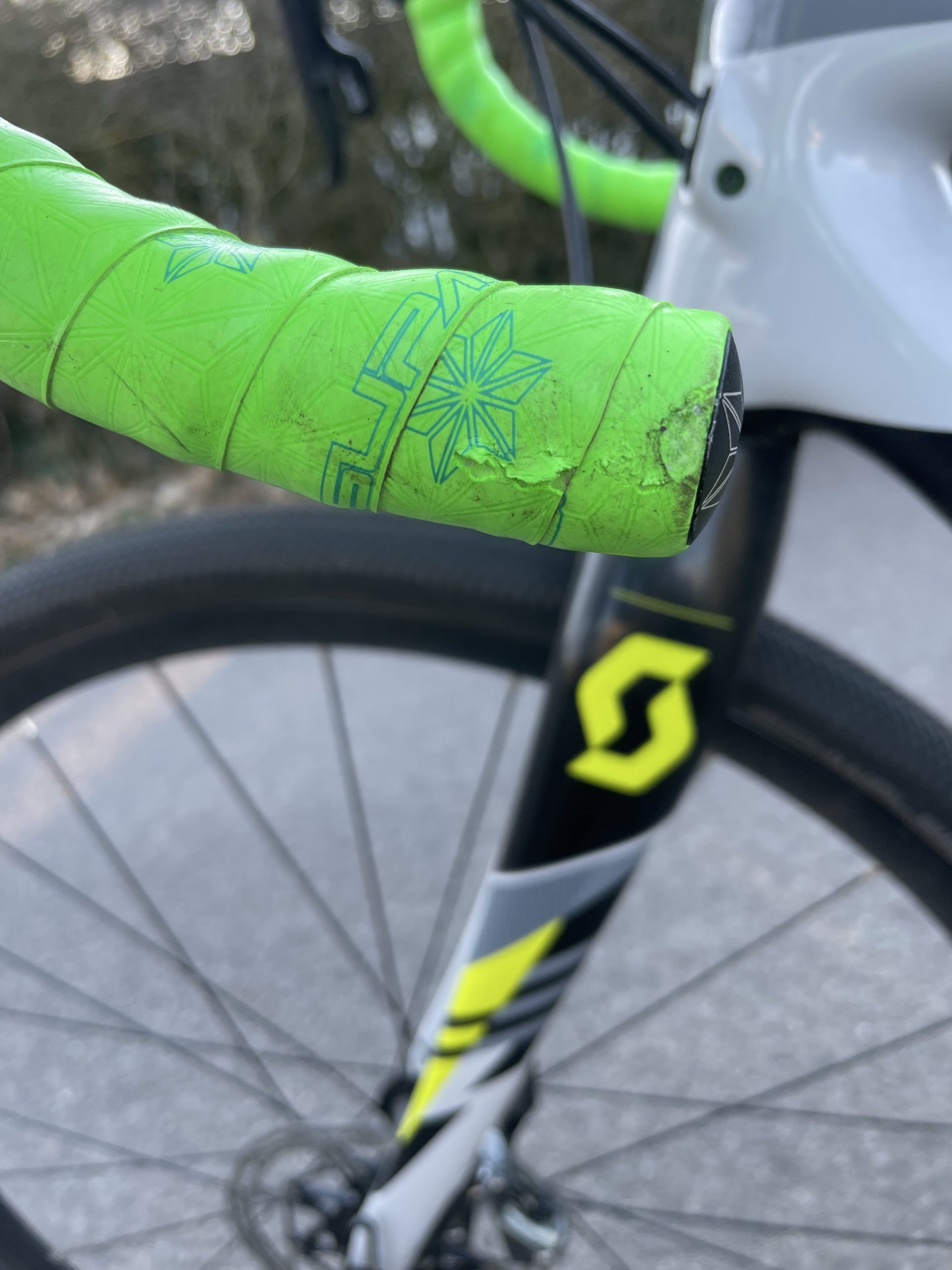 An zwei meiner Räder fahre ich schon länger mit Supacaz Lenkerbändern und habe gute Erfahrungen damit gemacht. Durchaus ein bekanntes Lenkerband, welches in der Szene z.B. bei Cyclocross, wie auch Straßenrennen immer wieder zu sehen ist. An meinem alten Crosser war es mal wieder an der Zeit, denn das musste viel im Training leiden. Schweiß, Regen, Sonne und unterschiedliche Handschuhe haben sich alle Mühe gegeben das Lenkerband zu verschleißen. Damit ihr einen Eindruck des Leidensweges meines Lenkers nachvollziehen könnt, habe ich zusätzlich ein paar Fotos online gestellt. Das ehemals grasgrüne Lenkerband war ebenfalls von Supacaz.