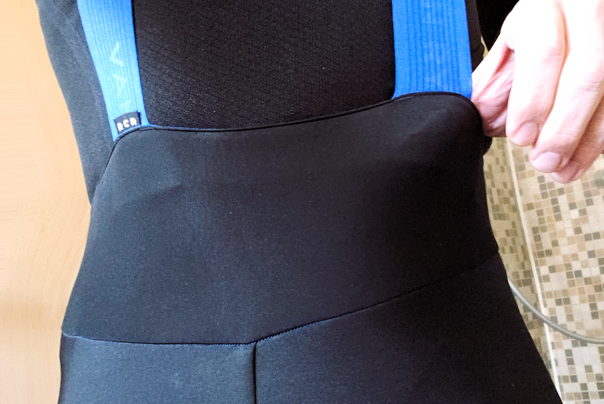 Bei der RCR fällt eins besonders auf: Sie ist hoch geschnitten und das ist im Winter eine besonders wichtige Eigenschaft. Nichts ist schlimmer, als eine Kältebrücke im Lendenbereich. Die Nähte sind dicht, was sich bei Gegenwind bemerkbar macht bzw. nicht bemerkbar macht, weil kein kalter Luftzug auf die Haut trifft. Die Träger sind sehr breit und schneiden nicht ein.