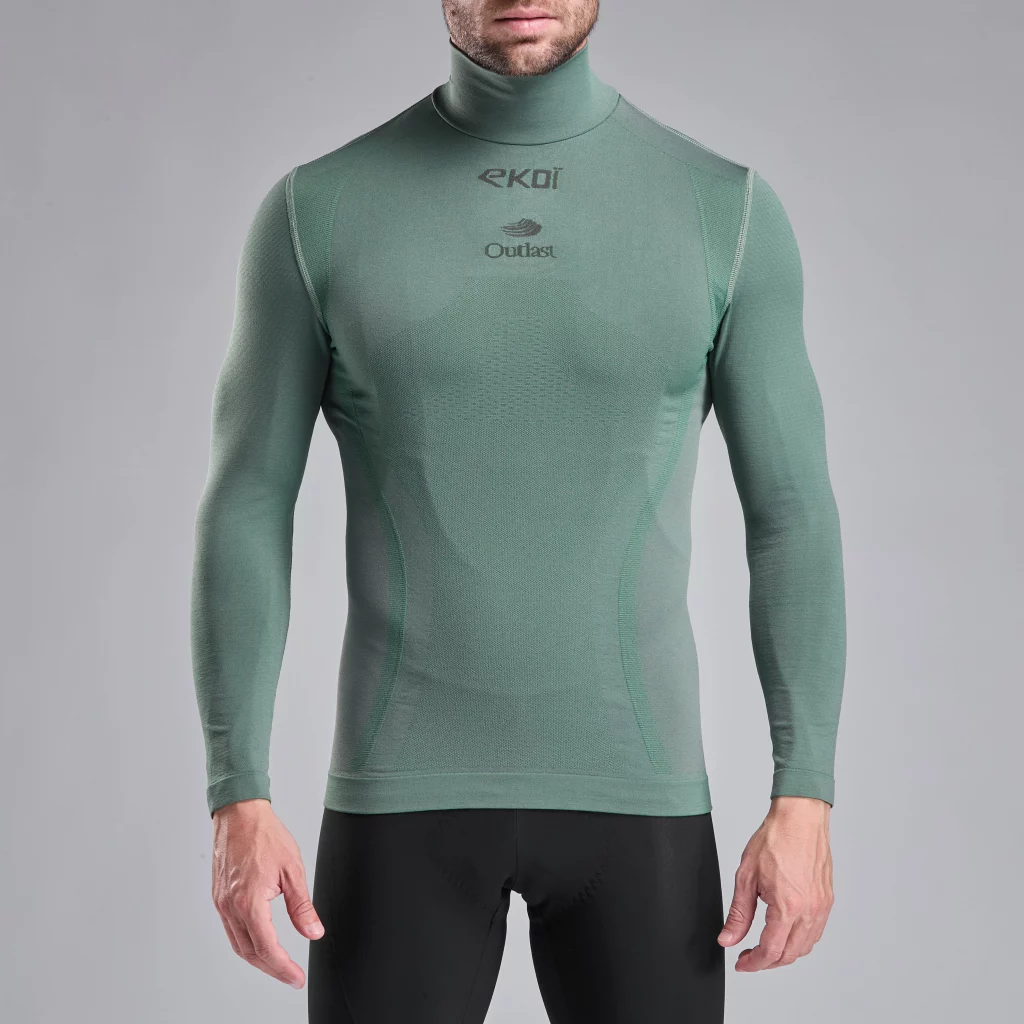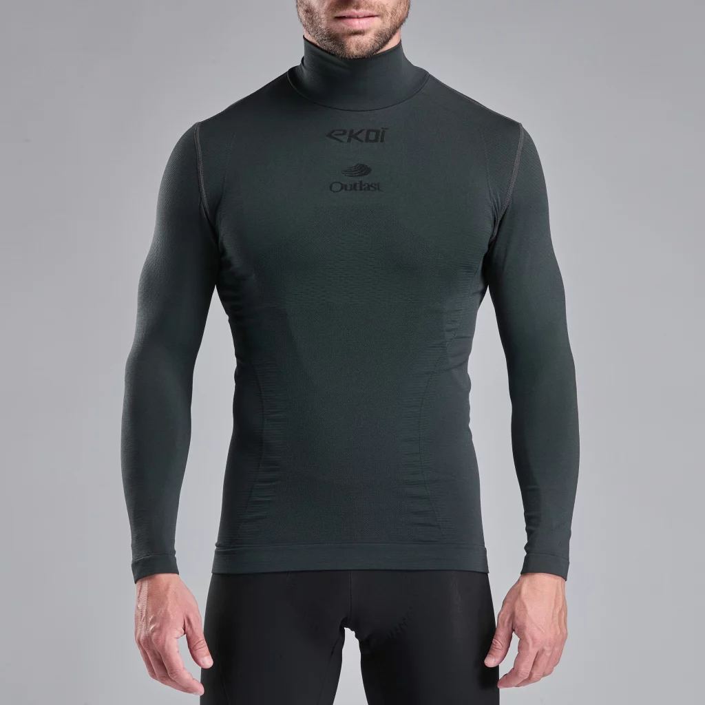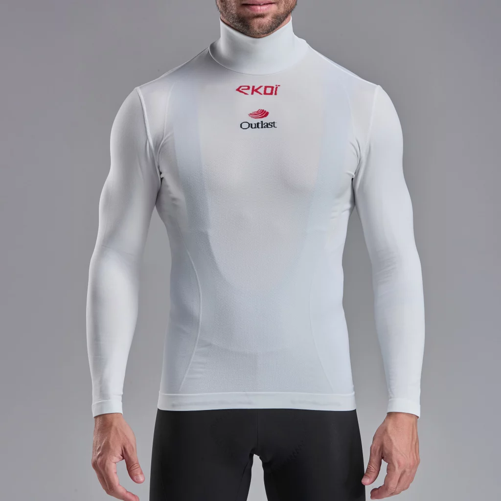 Sehr tief in die Tasche greifen muss der Radsportler aber trotzdem nicht. Von Ekoi gibt es einen thermoregulierenden Base Layer für 45,- Euro. Das Racing Winter Outlast Unterhemd trägt sich angenehm und wird auch bei Themperaturschankungen von Minus- und Plusgraden nicht zu warm. Was mir gut gefällt ist der hohe Kragen, der den Hals vor Kälte schützt. Das fehlt auch bei teurer Unterhemden häufig. Gefertigt wird übrigens in Italien.